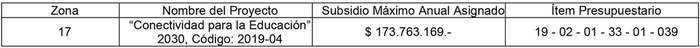 7. El monto de Subsidio máximo anual asignado para el Proyecto Concursable adjudicado es el siguiente: