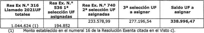 3.1. Sustitúyase en el resuelvo 3, el guarismo "13.343" por "13.338" y la tabla por la siguiente: