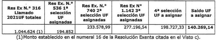 2.2. Reemplázanse en el resuelvo 4, el guarismo "233.596,72" por "233.578,99", el guarismo "621.455,28" por "616.193,01" y la tabla inserta por la siguiente: