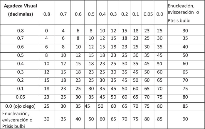Establece el compromiso del estado general de la persona, y según ello, la Clase del impedimento configurado para determinar el menoscabo:
