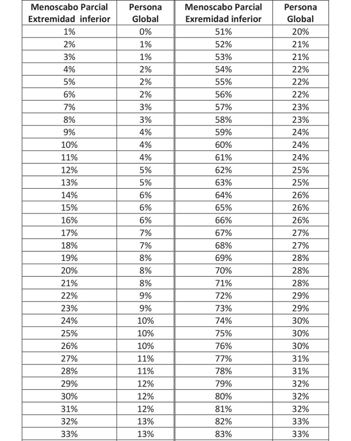 Clase II Menoscabo Global de la Persona 15 - 34%