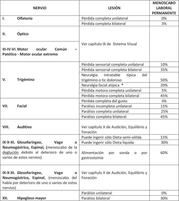 Estas normas se encuentran estructuradas por capítulos de los sistemas orgánicos e impedimentos comprometidos en la evaluación y calificación de la invalidez. El menoscabo laboral permanente se sistematiza, en la mayoría de los capítulos, en cinco clases con sus respectivas asignaciones porcentuales. El rango de los valores de cada clase permite discriminar desde mínimo a máximo, es decir, calificar con rangos altos, medios o bajos al interior de una misma clase. El informe del Médico Asignado o del Interconsultor correspondiente, cuando se hubiera requerido, deberá pronunciarse sobre estas magnitudes para permitir la mejor decisión de la Comisión Médica.