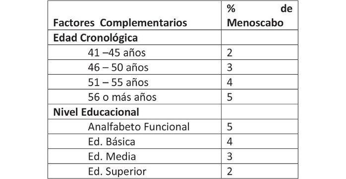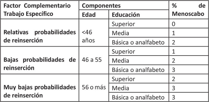 Para calificar el Menoscabo Laboral Permanente, estas normas optan por el criterio de pérdida en la capacidad general de trabajo utilizando el método que relaciona los impedimentos físicos o mentales con las interferencias que estos producen sobre las AVD. Esto permite establecer la similitud entre las dificultades para la vida diaria con las que tiene el trabajador para desarrollar cualquier trabajo.