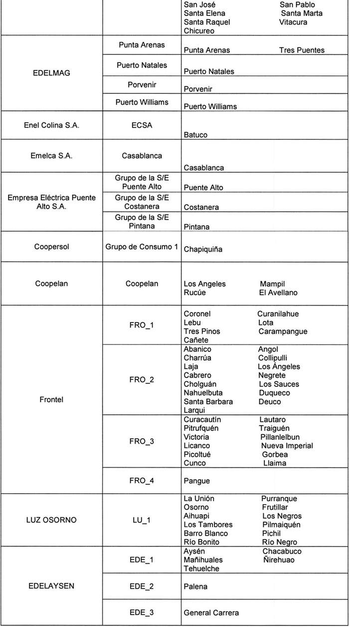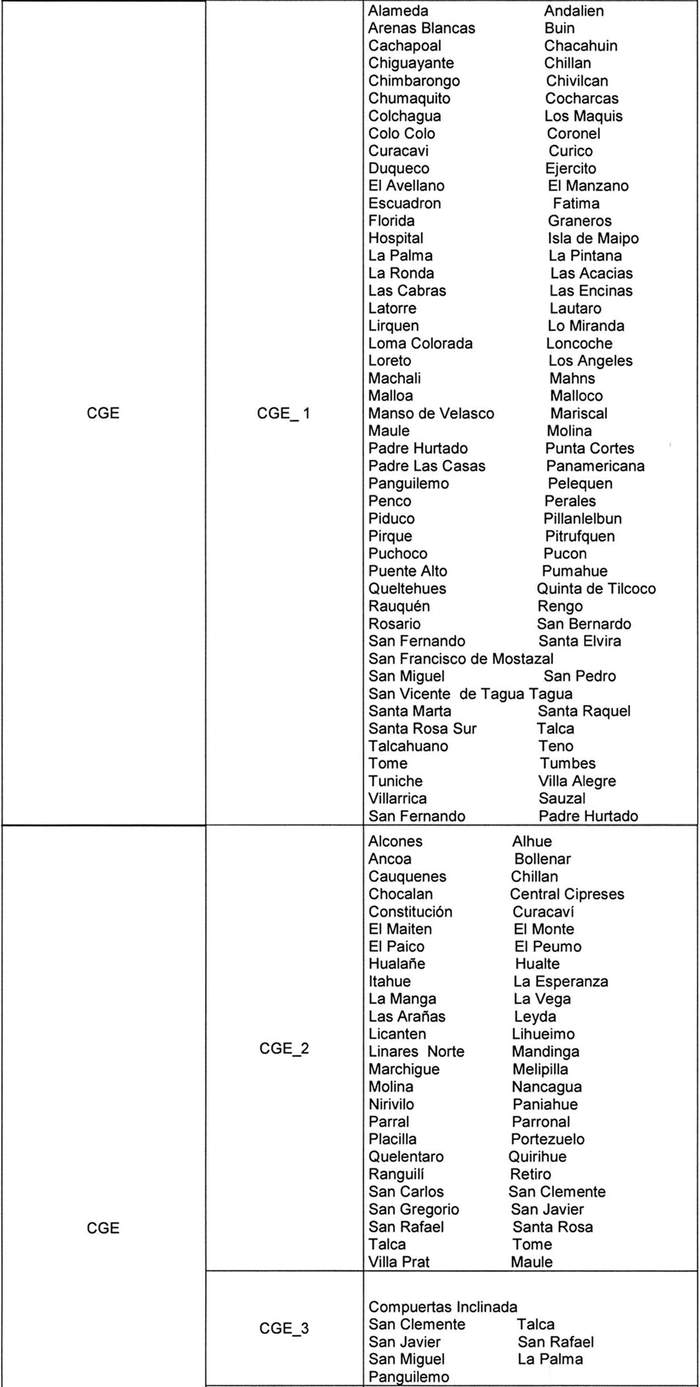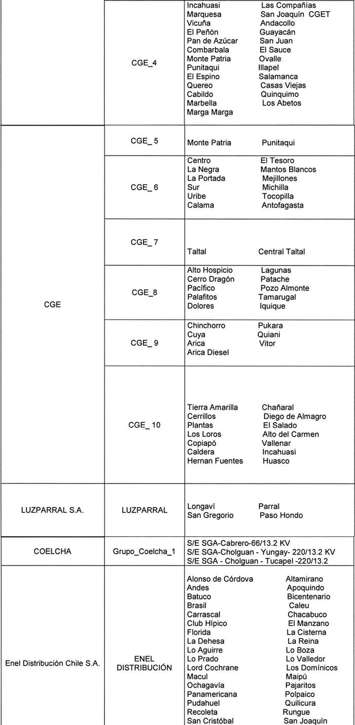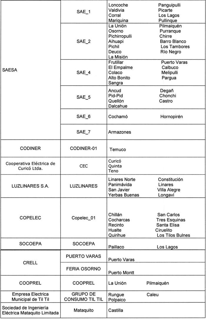 e) Lo señalado en carta SGR-09/2021 de Chilquinta Distribución; carta SGO-050/2021 de Compañía Eléctrica del Litoral S.A.; carta EC-175/2021 de Energía de Casablanca S.A.; carta Unidad de Explotación y Control de la Energía N° 426/2021 de Compañía General de Electricidad S.A.; carta Lp-1377/2021 de Luz Parral S.A.; carta C-0572-2021 de Coelcha; carta G.R. N° 93/2021 de Enel Distribución Chile S.A.; carta EEMG N° 847/2021-G de Edelmag; carta ECSA 052/2021 de Enel Colina S.A.; carta Emel.2021.238 de Emelca; carta GO N° 126/2021 de Empresa Eléctrica Puente Alto S.A.; carta Ord. N° 112/2021 de Coopersol; carta G N° 513/2021 de Coopelan; carta N° 1507531 del Grupo Saesa; carta GE N° 1421/21 de Codiner S.A.; carta Li-5145/2021 de Luz Linares S.A.; carta N° 4779/2021 de Copelec; carta N° 203/2021 de Socoepa; carta N° 2078 de Crell; carta Cooprel 112021/R138 de Cooprel; carta EEMTT N° 098/2021 de Empresa Eléctrica Municipal de Til Til; carta CEC N° 0876/2021 de Cooperativa Eléctrica Curicó y carta ADM N° 0167/21 de Sociedad de Ingeniería Eléctrica Mataquito Limitada; en las cuales se actualizan sus grupos de consumo;