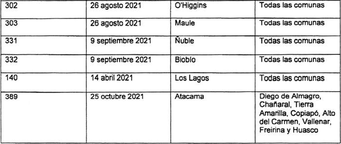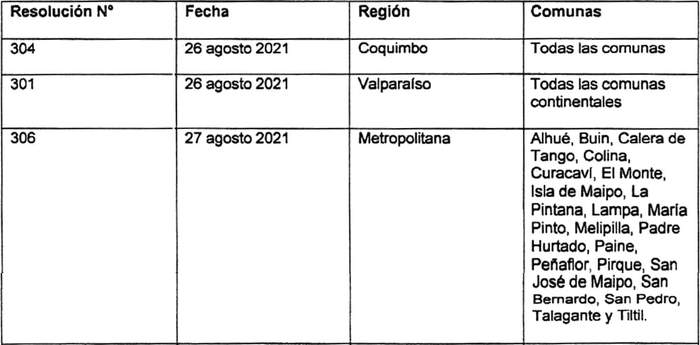 Que, observando el procedimiento establecido en la resolución exenta Nº 309, de 2021 y con cargo a la anualidad presupuestaria 2021, el Ministerio de Agricultura definió como situación de emergencia agrícola los efectos de daños productivos derivados del déficit hídrico producidos durante el año 2021, para las regiones de Coquimbo, Valparaíso, Metropolitana, O'Higgins, Maule, Ñuble, Biobío, Los Lagos y Atacama, esto mediante las siguientes resoluciones: