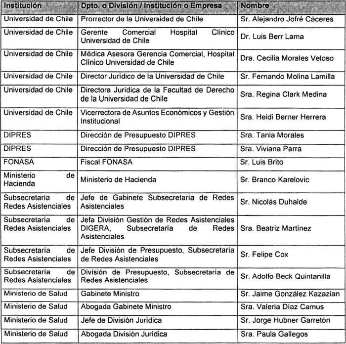 6. Que, la citada Glosa establece que esta mesa técnica deberá estar integrada por un representante de la Dirección de Presupuestos, de la Universidad de Chile y de su Hospital Clínico.