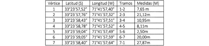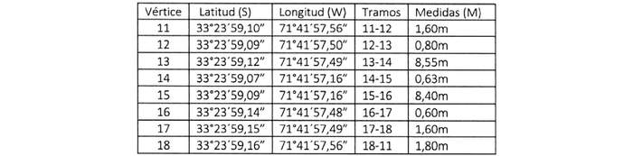 Sector 2, Tramo 1 (Escala 1) tiene una superficie de 5,10 m² y sus coordenadas geográficas, tramos y medidas son las siguientes: