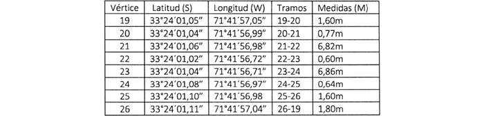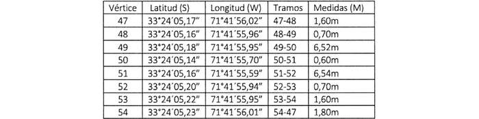 Sector 5, Tramo 1 (Escala II) tiene una superficie de 5,13 m² y sus coordenadas geográficas, tramos y medidas son las siguientes:
