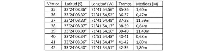 Decreto supremo Nº 342, de fecha 7 de septiembre de 2021, del Ministerio de Defensa Nacional, Subsecretaría para las Fuerzas Armadas, otorgó a Municipalidad de El Quisco, Corporación de Derecho Público, RUT Nº 69.061.700-5, con domicilio en la comuna de El Quisco, Avda. Francia Nº 011, Primera Renovación concesión marítima menor sobre un sector de Playa que disfrutaba por DS Nº 937, de fecha 5 de diciembre de 2011, del Ministerio de Defensa Nacional, en el lugar denominado Las Conchitas, comuna de El Quisco, provincia de San Antonio, Región de Valparaíso, con una superficie total de 403,18 m², la que fue tramitada con el SIABC Nº 47.149. A modo referencial se señala las siguientes coordenadas geográficas: