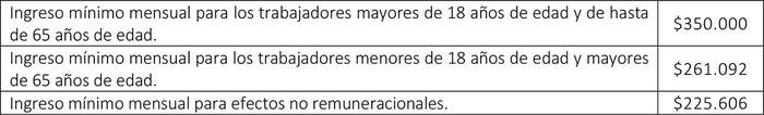 1. Determínase a partir del 1 de enero de 2022 que los valores del ingreso mínimo mensual serán los siguientes: