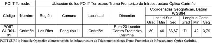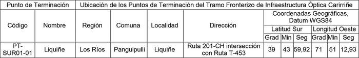 3.1 Ubicación de los Puntos de Terminación del Tramo Fronterizo de Infraestructura Óptica Carirriñe.