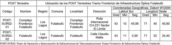 2.2 Ubicación de los POIIT Terrestres del Tramo Fronterizo de Infraestructura Óptica Futaleufú.