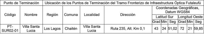 3.2 Ubicación de los Puntos de Terminación del Tramo Fronterizo de Infraestructura Óptica Futaleufú.