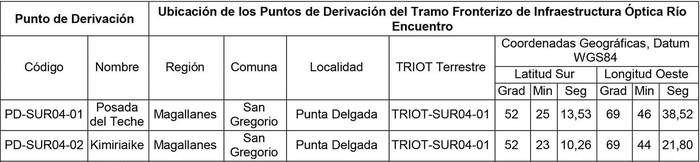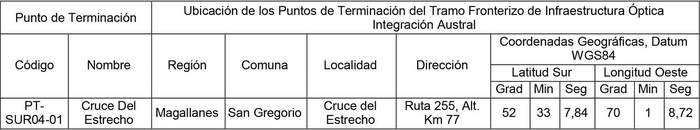 3.3 Ubicación de los Puntos de Terminación del Tramo Fronterizo de Infraestructura Óptica Integración Austral.