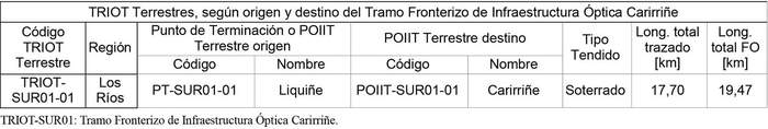 4.1 Ubicación del TRIOT Terrestre, según origen y destino del Tramo Fronterizo de Infraestructura Óptica Carirriñe.