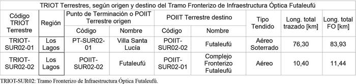 4.2 Ubicación de los TRIOT Terrestres, según origen y destino del Tramo Fronterizo de Infraestructura Óptica Futaleufú.