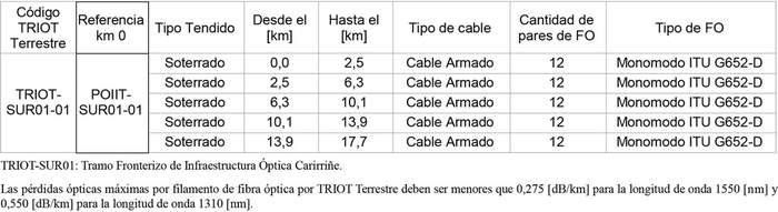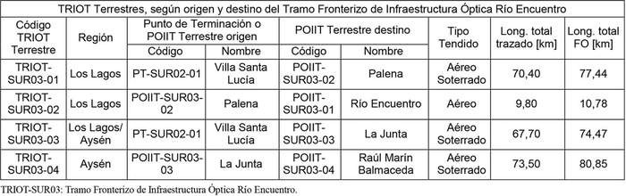 5.1 Características de los TRIOT Terrestres del Tramo Fronterizo de Infraestructura Óptica Carirriñe.