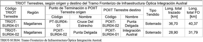 4.4 Ubicación de los TRIOT Terrestres, según origen y destino del Tramo Fronterizo de Infraestructura Óptica Integración Austral.