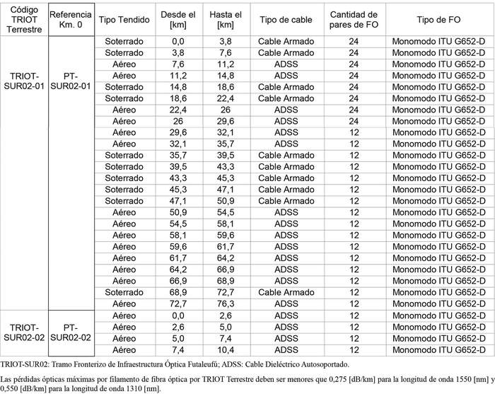 5.2 Características de los TRIOT Terrestres del Tramo Fronterizo de Infraestructura Óptica Futaleufú.