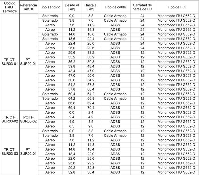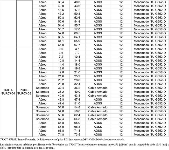 5.3 Características de los TRIOT Terrestres del Tramo Fronterizo de Infraestructura Óptica Río Encuentro.