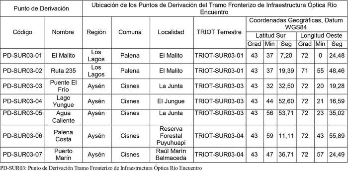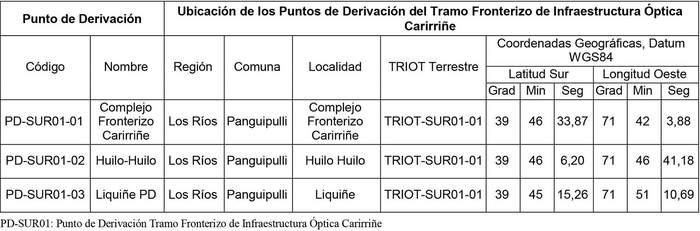 6.1 Ubicación de los Puntos de Derivación del Tramo Fronterizo de Infraestructura Óptica Carirriñe.