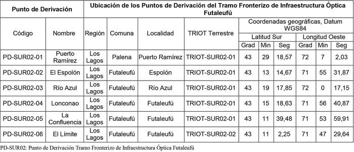 6.2 Ubicación de los Puntos de Derivación del Tramo Fronterizo de Infraestructura Óptica Futaleufú.