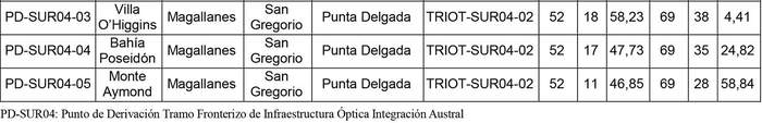 7.2.4 Zona de Servicio Mínima de los POIIT Terrestres del Tramo Fronterizo de Infraestructura Óptica Integración Austral.