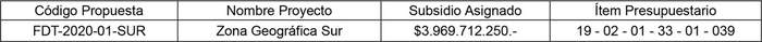 a) Lo solicitado por la interesada mediante ingreso Subtel Nº 149.444, de fecha 27.08.2021, el cual fue complementado por los ingresos Subtel Nº 174.658 y Nº 174.673, ambos de fecha 22.10.2021, y Nº 180.601, de fecha 04.11.2021, para el Proyecto Zona Geográfica Sur, Código: FDT-2020-01-SUR, del Concurso Público "Fibra Óptica en Complejos Fronterizos", Código: FDT-2020-01, cuya Propuesta consta de los ingresos Subtel señalados en los literales j), k) y l) de los Vistos.