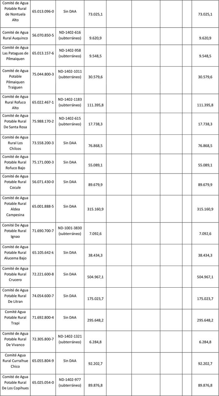 - Cualquier otro antecedente técnico, como espacialidad de los SSR, económico e inclusive calidad del agua, entre otros, que impida a los SSR y APRs emplazados en un sector, optar a otras fuentes distintas a las subterráneas para obtener el recurso hídrico."