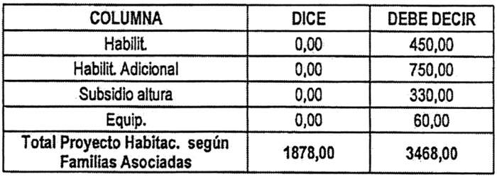 a. Reemplázase en la tabla inserta en su Resuelvo 3., Pequeños Condominios, su fila Nº 1, por la siguiente: