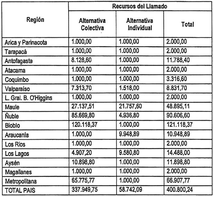 b. Reemplázase en la tabla Alternativa Colectiva inserta en su Resuelvo 5., las filas correspondientes a Antofagasta y Total País por las siguientes: