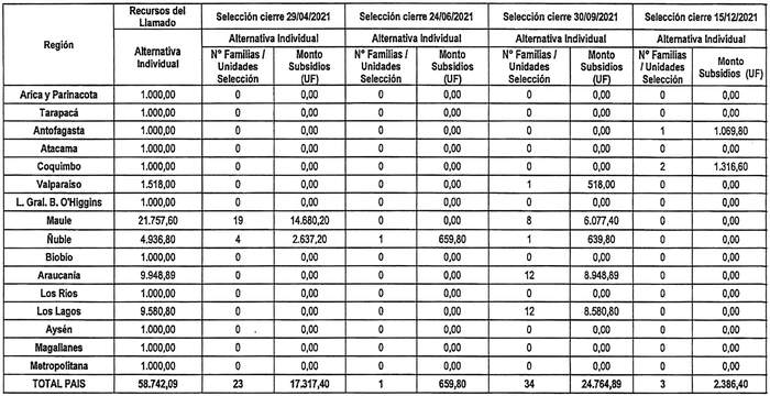 d. Reemplázase en la tabla Alternativa Individual inserta en su Resuelvo 5., en la columna Selección cierre 30/09/2021, en la fila correspondiente a Total País, la celda correspondiente al Nº familias / Unidades selección por la siguiente:
