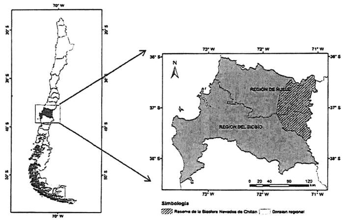 La superficie ubicada dentro de los límites de la Reserva de la Biósfera Nevados de Chillán - Laguna del Laja, ubicada en el sector cordillerano de las regiones de Ñuble y Biobío (Figura 3).