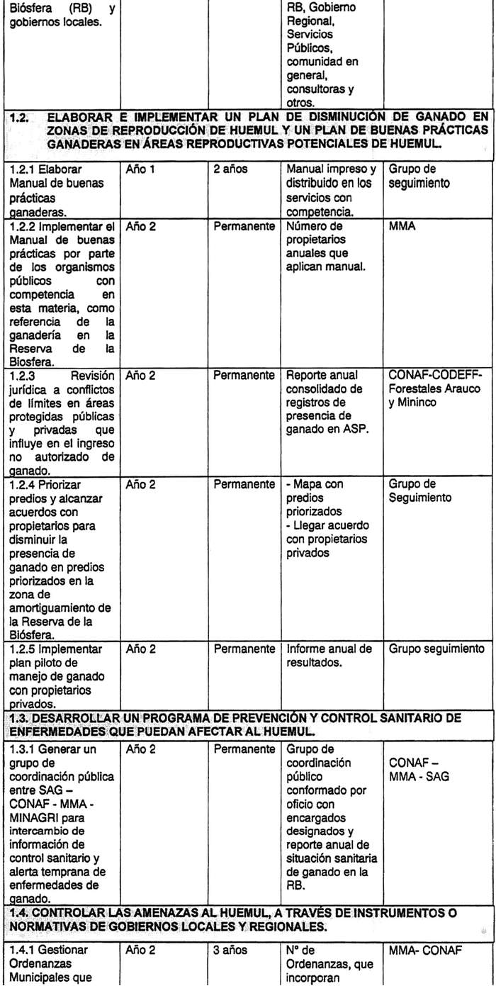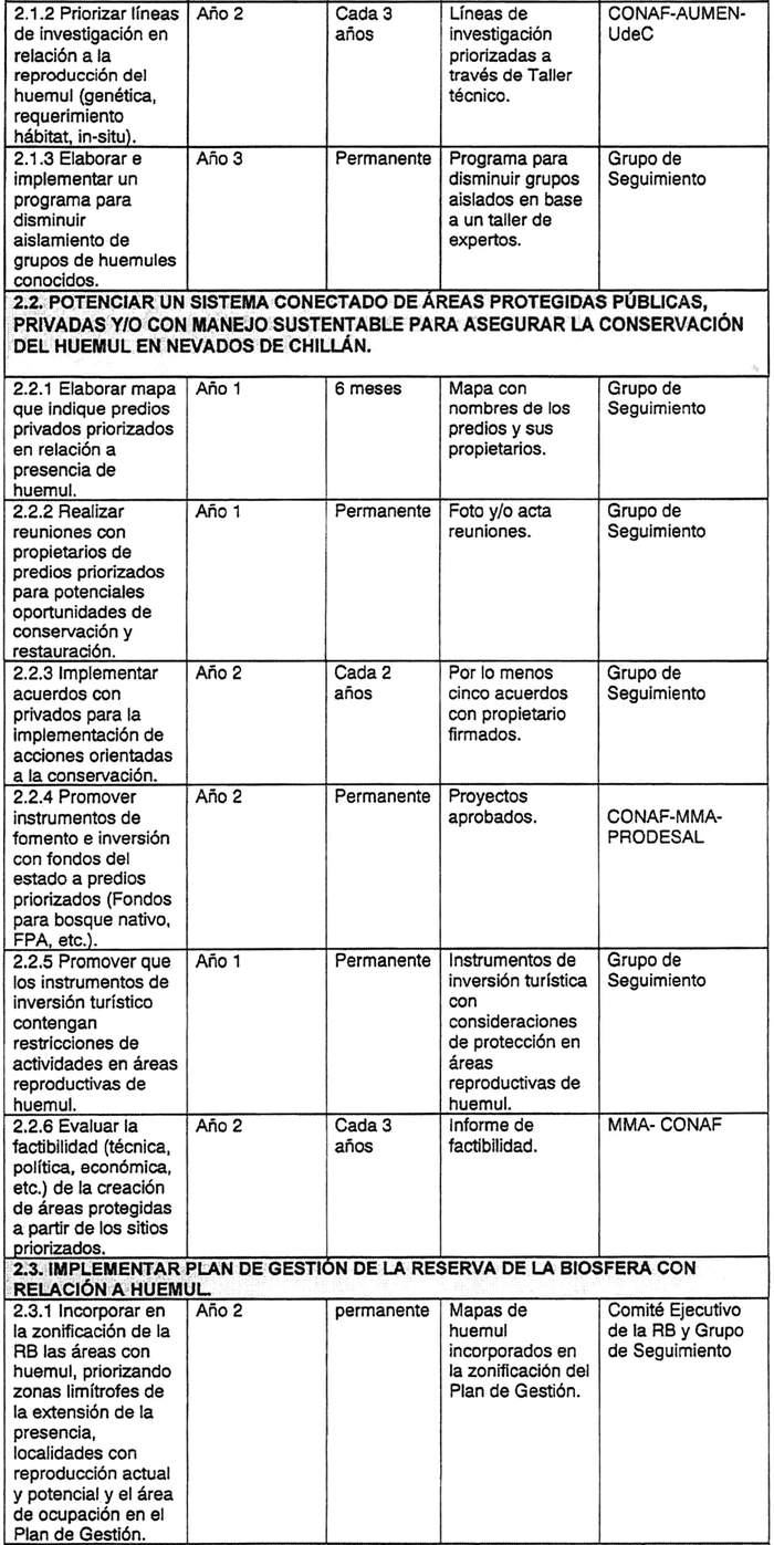 Instrumento administrativo que contiene el conjunto de metas, objetivos y acciones que deberán ejecutarse para recuperar, conservar y gestionar al huemul (Hippocamelus bisulcus) en la zona Nevados de Chillán.