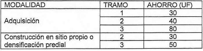 6°.- Para postular al llamado a que se refiere el número 1° de esta resolución, los postulantes, sus cónyuges o convivientes civiles deberán acreditar que cumplen con el siguiente ahorro mínimo exigido para el tramo y modalidad a que postulenResolución 436 EXENTA,