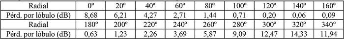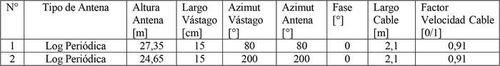 - Arreglo de antenas de acuerdo a la siguiente tabla: