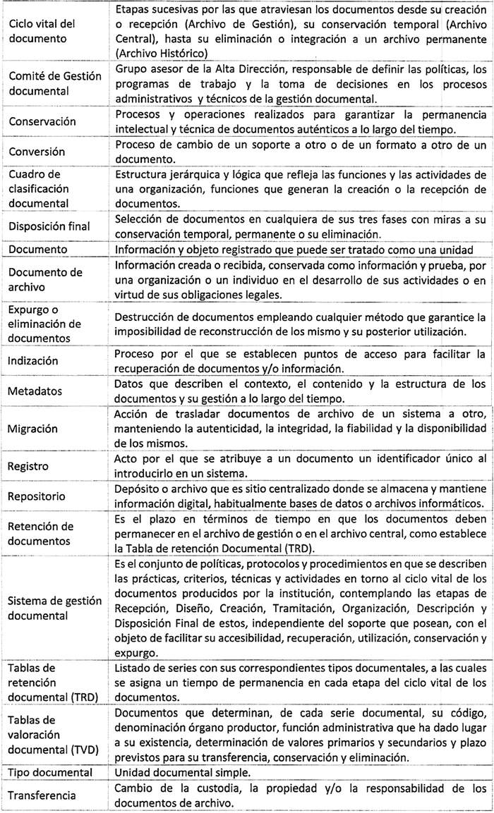 Anexo 2: "Definiciones atingentes a la política de gestión documental".