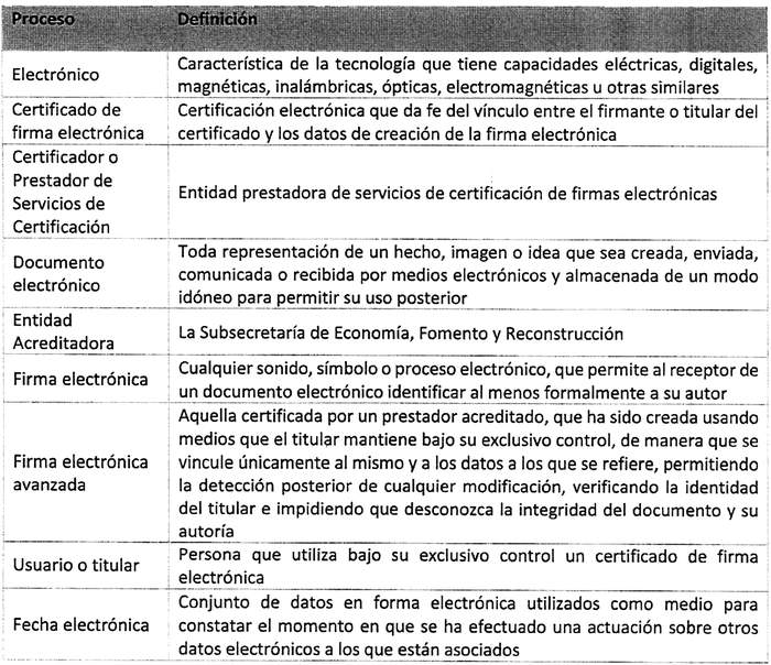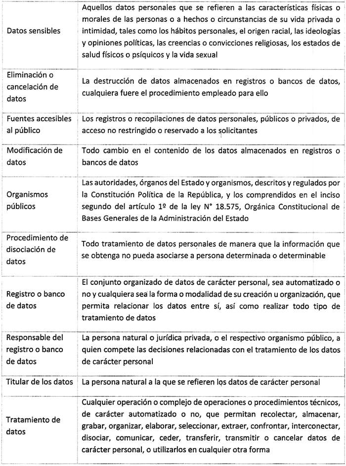 Las definiciones de carácter general, en relación con documentos electrónicos, firma electrónica y servicios de certificación y sobre protección de datos personales son aquellas contenidas en Anexo 2 "Definiciones atingentes a la política de gestión documental".
