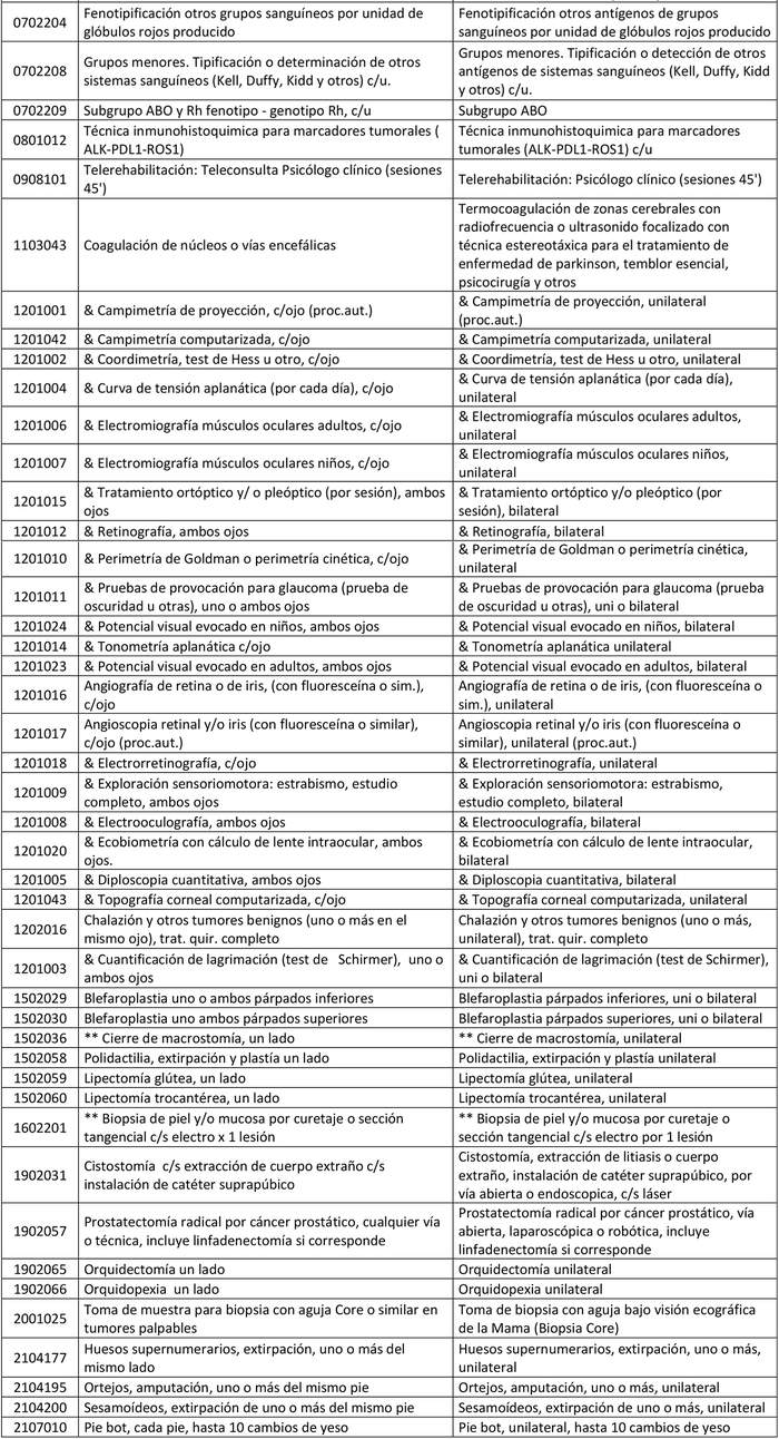 Se desagregan 3 prestaciones del arancel, generándose los siguientes 13 nuevos códigos de prestaciones.