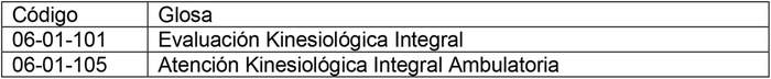 Para el código 06-01-105 Atención Kinesiológica Integral Ambulatoria