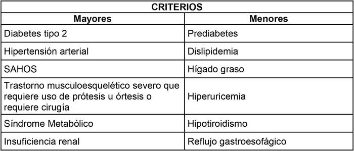* Entre 35 y 40 con morbilidad asociada (1 criterio mayor + 1 menor o 3 menores).