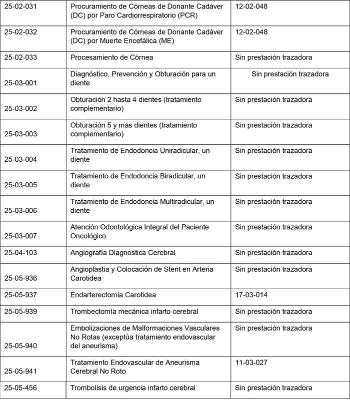 - Las prestaciones Procuramiento de Córneas de Donante Cadáver (DC) por Paro Cardiorrespiratorio (PCR) código 25-02-031 y Procuramiento de Córneas de Donante Cadáver (DC) por Muerte Encefálica (ME) código 25-02-032, podrán ser efectuadas en Unidades de Anatomía Patológica o en la Unidad del Paciente, siempre que el lugar reúna las condiciones de infraestructura para realizar el procuramiento sin quiebre de la técnica aséptica.