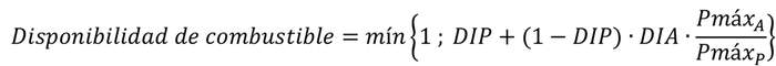 Para el caso de una unidad generadora térmica que pueden operar con gas o diésel, su disponibilidad de combustible se determinará de acuerdo con la siguiente expresión: