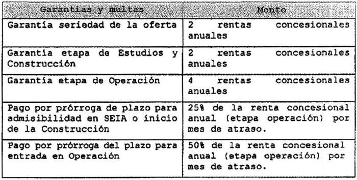 a) Etapa de Estudios y Construcción: Se deberá pagar el 50% de la renta concesional anual fijada por el Ministerio, la que comienza a regir desde la firma de la escritura pública del contrato de concesión onerosa, hasta la entrada en operación del proyecto.