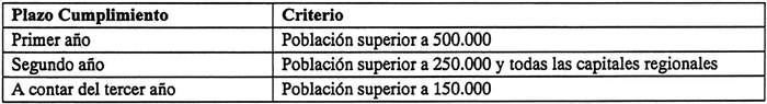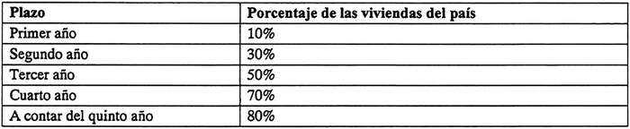 Dicha recolección de residuos deberá abarcar un territorio que considere un porcentaje de las viviendas del país. Dicho porcentaje irá aumentando en los plazos que la siguiente tabla establece: