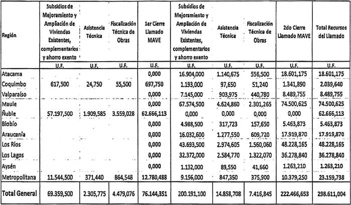 "22. Los recursos involucrados en la selección ascienden a un total de 298.611,004 UF y su distribución nacional será la siguiente: