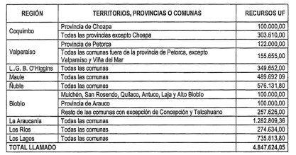 D.O. 28.04.2022proyectos que se emplacen en zonas donde se encuentren vigentes Planes de Descontaminación Atmosférica del Ministerio de Medio Ambiente, así como aquellos donde las exigencias de éstos para viviendas nuevas comiencen a regir en fecha posterior a su calificación, pero dentro del año del presente llamado, podrán incrementar su subsidio base por el monto indicado en la tabla inserta a continuación: