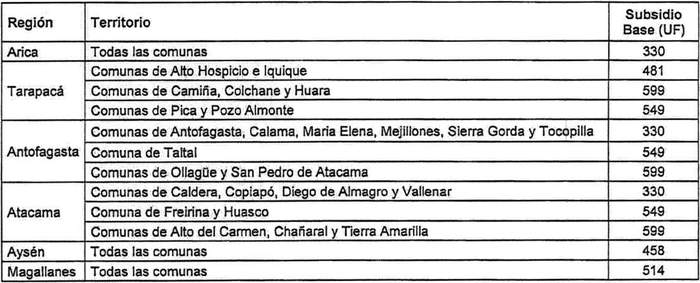 9. Establécese, para las regiones que a continuación se identifican, que el monto de subsidio base para los proyectos que participen del presente llamado, es el que se define a continuación, al que se le aplicará el factor multiplicador definido en la resolución exenta N° 1.874 (V. y U.), de 2015, según la comuna donde se ubique el proyecto: