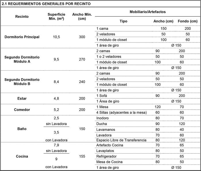 2. ESPACIOS Y USOS MÍNIMOS PARA VIVIENDAS PARA PERSONAS CON DISCAPACIDAD QUE APLIQUEN SUBSIDIO DE MOVILIDAD REDUCIDA.