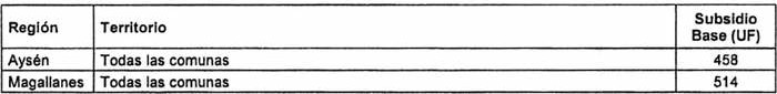 9. Establécese, para las regiones que a continuación se identifican, que el monto de subsidio base para los proyectos que participen del presente llamado, es el que se define a continuación, al que se le aplicará el factor multiplicador definido en la resolución exenta N° 1.874 (V. y U.), de 2015, según la comuna donde se ubique el proyectoResolución 976 EXENTA,